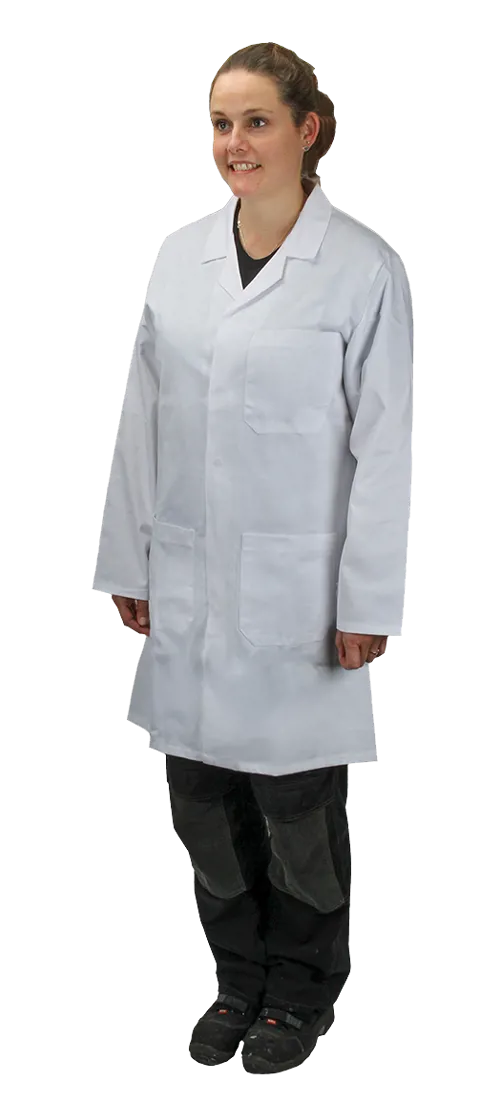 Denne laboratoriekittel er fremstillet i en blanding af 65 % polyester og 35 % bomuld, hvilket giver en kombination af slidstyrke og komfort. Kitlen lukkes med trykknapper og er udstyret med to udvendige sidelommer samt en brystlomme, som gør det let at have småredskaber eller notesager ved hånden. Modellen er i størrelse Medium og er forholdsvis kort i snittet.